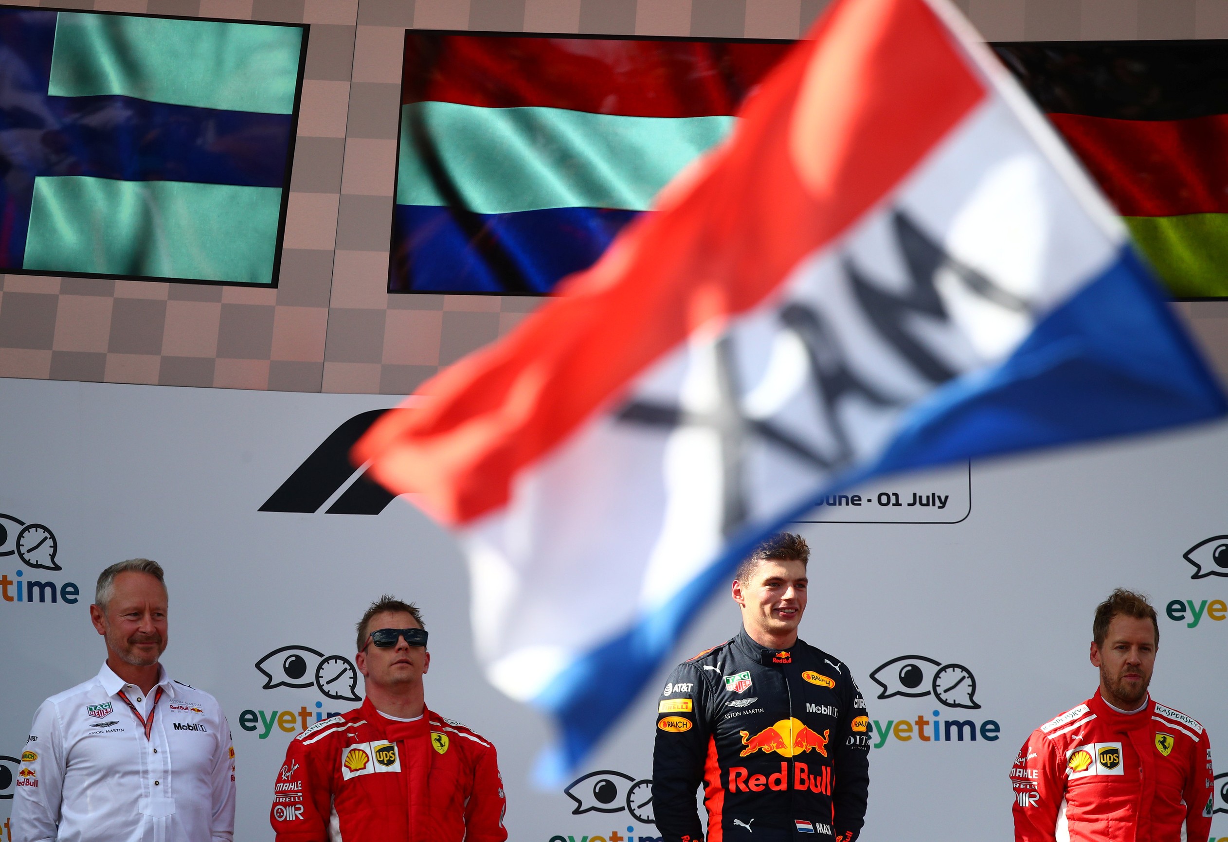 Quem também sorriu foi Sebastian Vettel, que, com o terceiro lugar e o abandono de Hamilton, reassumiu a liderança do campeonato um ponto à frente do rival (146 a 145). Kimi Raikkonen fez boa corrida e terminou em segundo, inclusive atacando Verstappen no fim da prova e fazendo a melhor volta, com novo recorde do circuito de Spielberg 1m06s. Já a Ferrari também recuperou a ponta do Mundial de Construtores, com dez pontos de vantagem (257 a 247).
